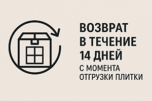 Возврат в течение 14 дней с момента отгрузки плитки.